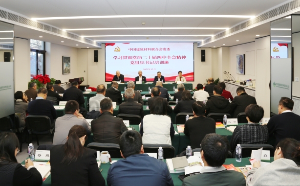 为在中国建筑材料联合会系统深入学习贯彻党的二十届四中全会精神,贯彻落实中央经济工作会议精神,进一步加强党对协会工作的全面领导,更好推动建材行业绿色低碳安全高质量发展,12月25日—26日,中国建筑材料联合会党委举办学习贯彻党的二十届四中全会精神党组织书记培训班。