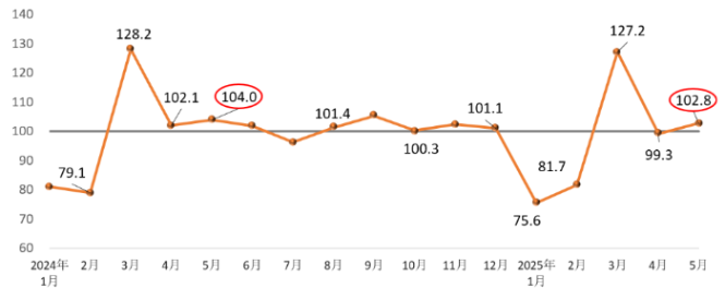 2025年5月建筑材料工业景气指数(MPI)——5月份建筑材料工业运行波动回升